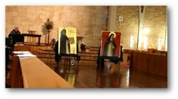 We are indeed privileged to be part contributors to the writing of two new icons.These beautiful images of Dominic and Catherine were installed in Santa Sabina Chapel on 29 August, feast of St Sabina, during a solemn ceremony attended by sisters, staff and students, and the iconographer, Michael Galovic. Sr Mary-Clare and Dr Maree Herrett blessed the icons with holy water and oil (on the back!!) while the choir sang.
